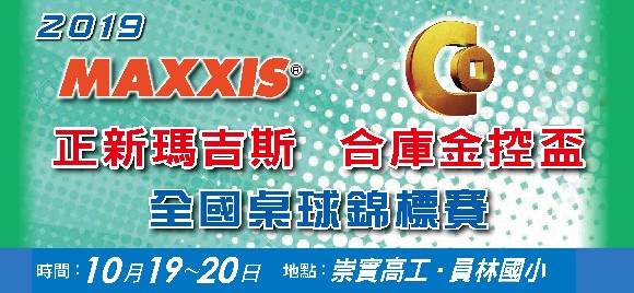 2019年『正新瑪吉斯合庫金控盃』全國桌球錦標賽,於10/19~20在彰...