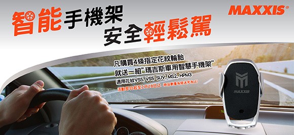 即日起至2021年2月28日止,凡購買4條指定花紋車胎,即送『瑪吉斯智能...