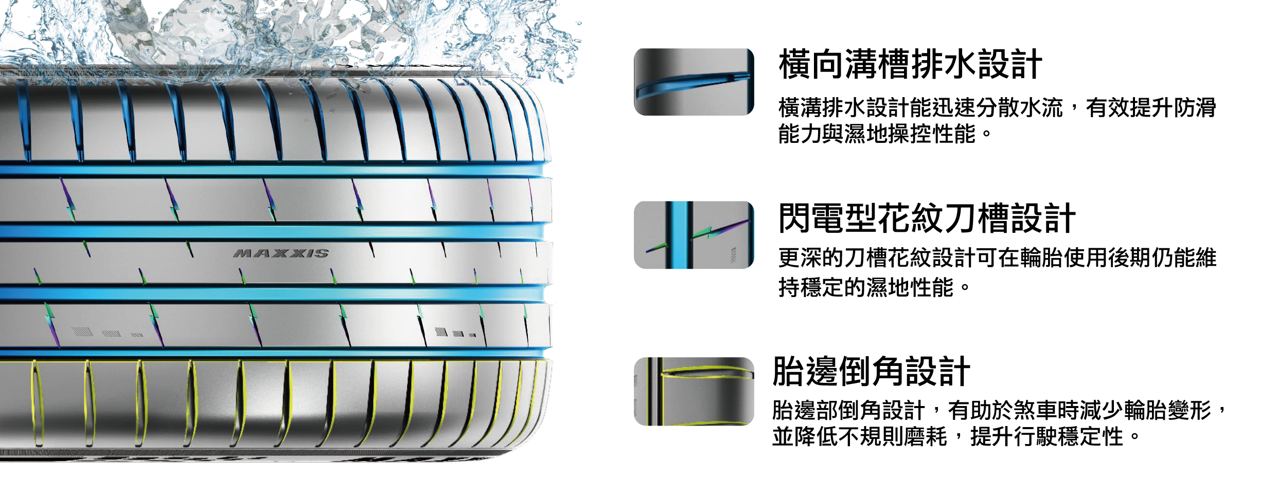 VS6 以其優異性能、創新花紋與前瞻材料運用, 榮獲 2025 美國 MUSE 設計金獎 與 2025 德國 Red Dot 紅點設計獎, 展現 MAXXIS 在高性能產品領域的世界級水準。